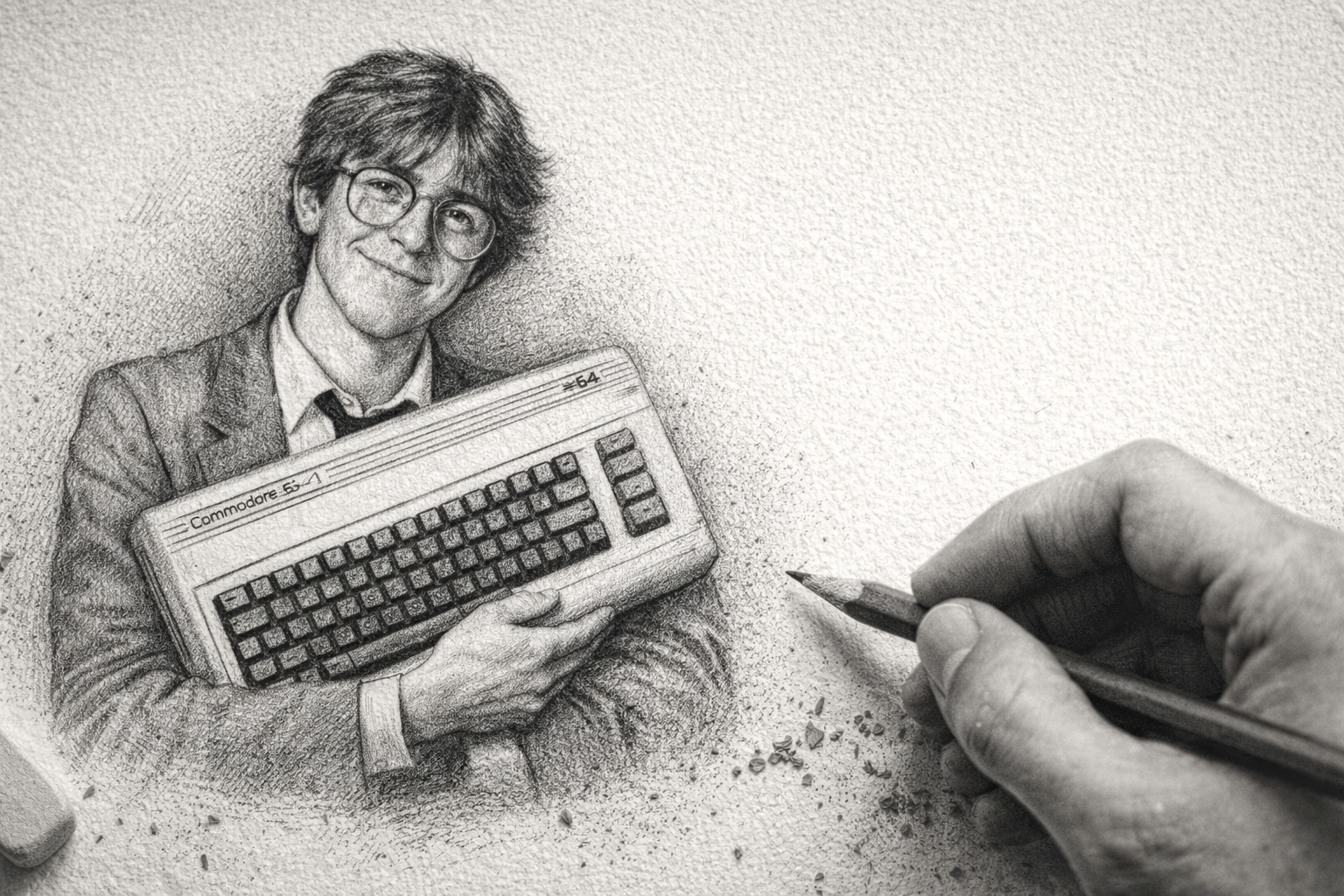 Es folgte natürlich der für Nerds der Generation X obligatorische Commodore C64, gepaart mit einer Datasette (Kassettenrekorder für Homecomputer), einem 9-Nadel-Drucker und einem (ja, wirklich) schwarz/weiß-Röhrenfernseher.